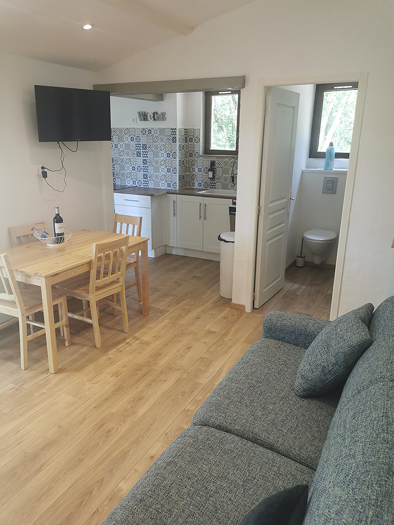 Gîte classé 3 étoiles, lumineux, rénové en 2023 avec tout le confort. Capacité 2 à 4 personnes. Linge de maison fourni (draps + serviettes). Grand parking et espace privé. Terrasse avec table et 4 chaises extérieures, 2 transats.Cuisine fonctionnelle entièrement équipée (+ machine à laver). Salon / salle,-à-manger avec un canapé-lit confortable 2 places en 140x190, table à manger 4 personnes. Buanderie avec WC et machine à laver le linge. Chambre avec grand lit 160x200, armoire. Grandes baies vitrées équipées de stores électriques donnant sur la terrasse et le parc.,Salle de bains avec douche italienne, double vasque, sèche-serviettes. Wi-fi Deux années consécutives, en 2023 et 2024, prix d'excellence décerné par Booking avec une note globale de 9,5