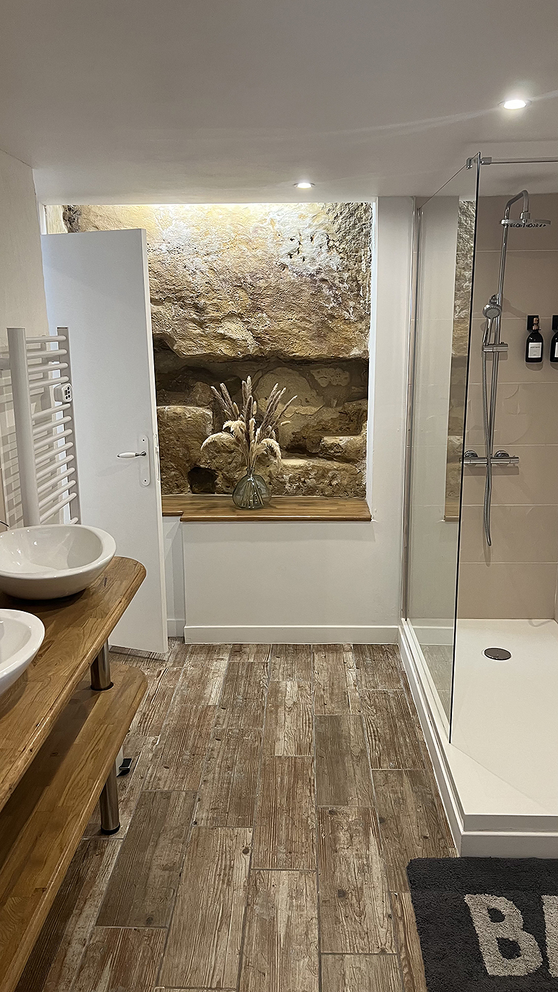 Renovated in 2023, 23 m². Parking, private terrace with table and 2 chairs. Stunning view of the Borie ! Large bed 160x200, chest of drawers and wardrobe. Small living room with table and 2 chairs, sofa, electric kettle, wifi. Large and unusual bathroom (rock wall on one side) with double sink, Italian shower with body soap and shampoo, towel dryer, hair dryer. Plentiful breakfast served between 8 and 9:00 am.For 2 years in a row, 2023 and 2024, excellence award given by Booking with an average rating of 9,5