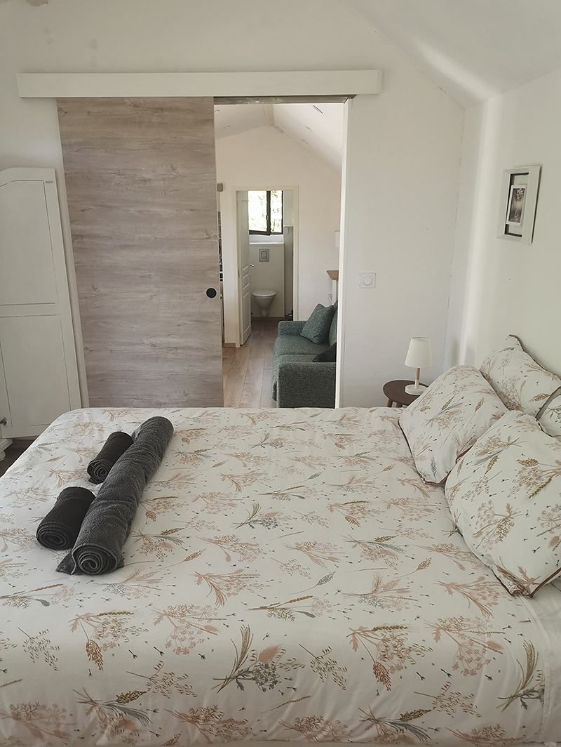 Gîte classé 3 étoiles, lumineux, rénové en 2023 avec tout le confort. Capacité 2 à 4 personnes. Linge de maison fourni (draps + serviettes). Grand parking et espace privé. Terrasse avec table et 4 chaises extérieures, 2 transats.Cuisine fonctionnelle entièrement équipée (+ machine à laver). Salon / salle,-à-manger avec un canapé-lit confortable 2 places en 140x190, table à manger 4 personnes. Buanderie avec WC et machine à laver le linge. Chambre avec grand lit 160x200, armoire. Grandes baies vitrées équipées de stores électriques donnant sur la terrasse et le parc.,Salle de bains avec douche italienne, double vasque, sèche-serviettes. Wi-fi Deux années consécutives, en 2023 et 2024, prix d'excellence décerné par Booking avec une note globale de 9,5